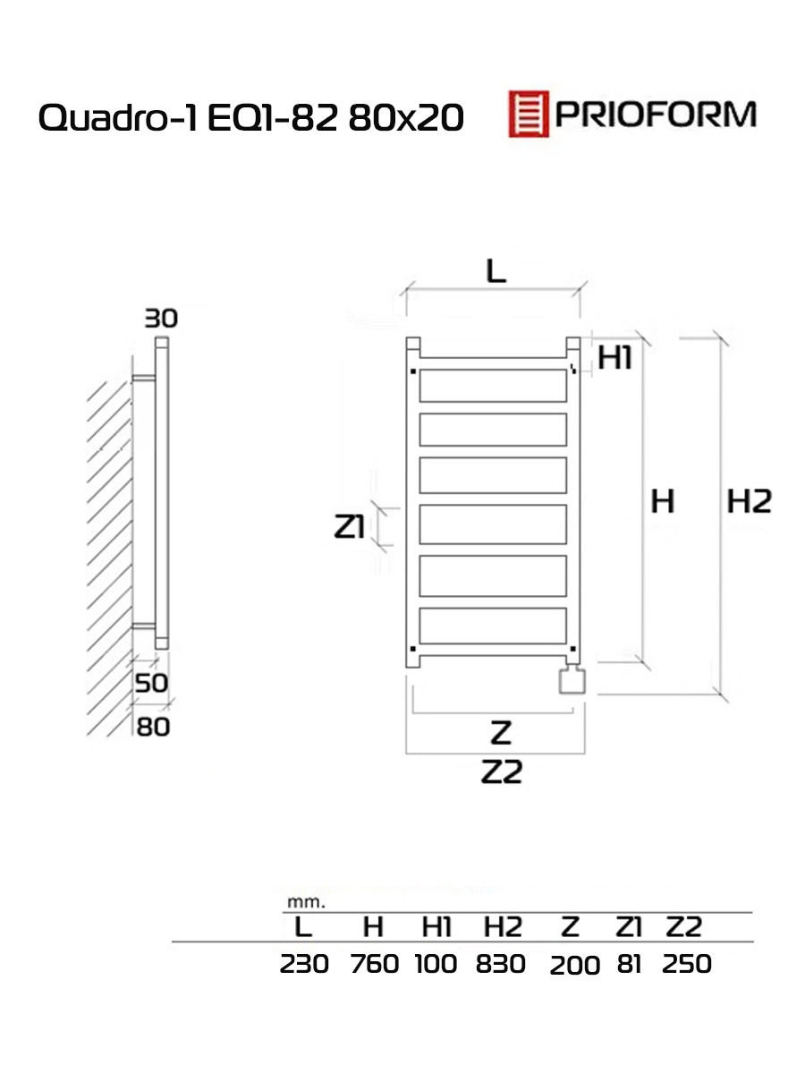Отступ от стены до радиатора регулируется телескопическим кронштейном от 40 до 60 мм.
